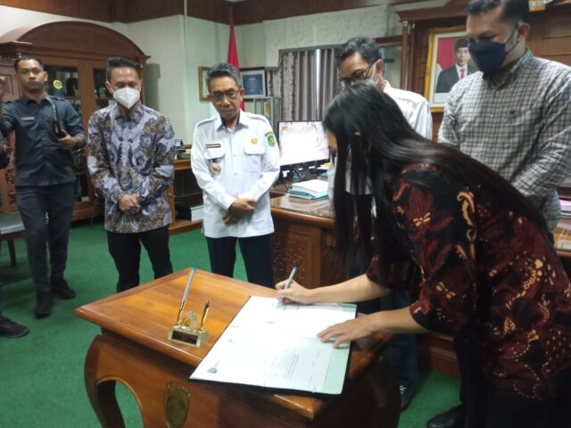 Momen Bupati saat menyaksikan penandatangan PKS. (Foto Yulius Alvian Pro Kutim)
