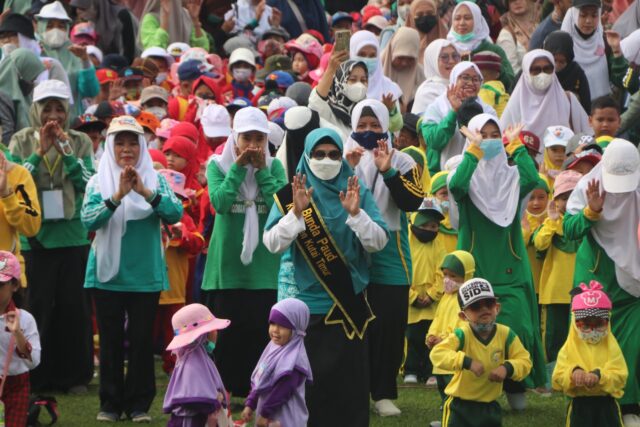 Bunda PAUD Kutim Ir Hj Siti Robiah bersama siswa sekolah TK dan PAUD. (Pro Kutim)