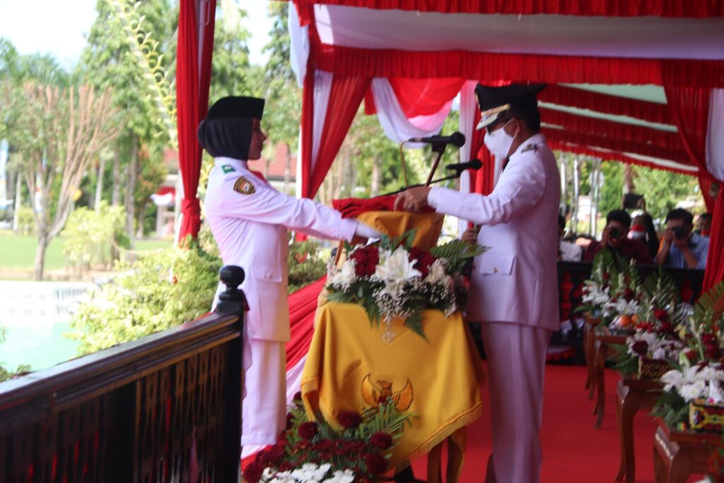 Bupati H Ardiansyah Sulaiman bertindak sebagai Inspektur Upacara dalam HUT ke-77 RI di Kutim. (Wahyu Yuli Artanto Pro Kutim)