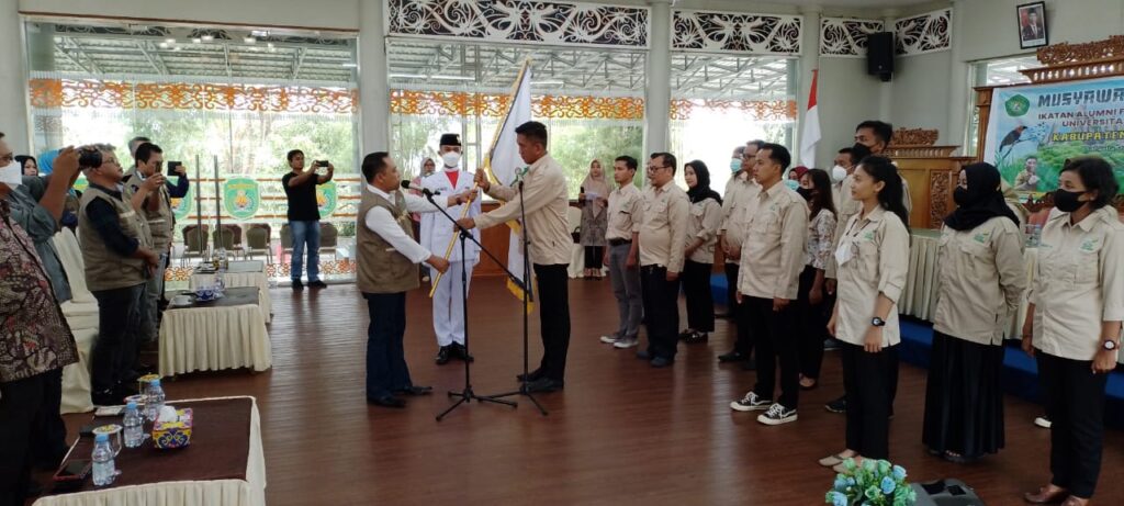 Teks: pelantikan Dewan Pengurus Cabang Ikatan Alumni Fakultas Kehutanan Universitas Mulawarman (IKA Fahutan Unmul) Kabupaten Kutai Timur (Kutim) di Pendopo Rumah Jabatan Bupati Kutim, di Bukit Pelangi, Sangatta, Sabtu (10/9/2022). (Fuji Pro Kutim)