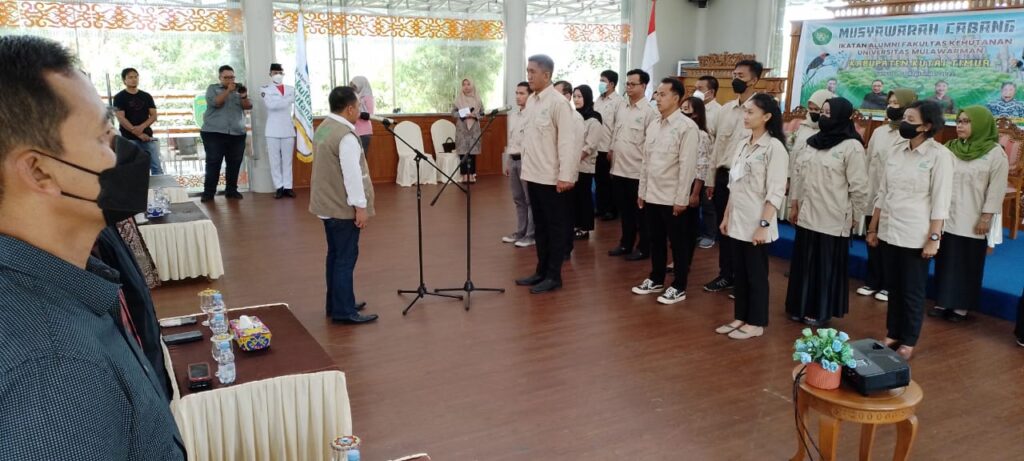 SANGATTA- Dewan Pengurus Cabang Ikatan Alumni Fakultas Kehutanan Universitas Mulawarman (IKA Fahutan Unmul) Kabupaten Kutai Timur (Kutim) resmi dilantik, Sabtu (10/9/2022). Pelantikan dilaksanakan di Pendopo Rumah Jabatan Bupati Kutim, di Bukit Pelangi, Sangatta. Ketua Umum IKA Fahutan Unmul Sarkowi V Zahry yang langsung melantik DPC Fahutan Unmul Kutim.
