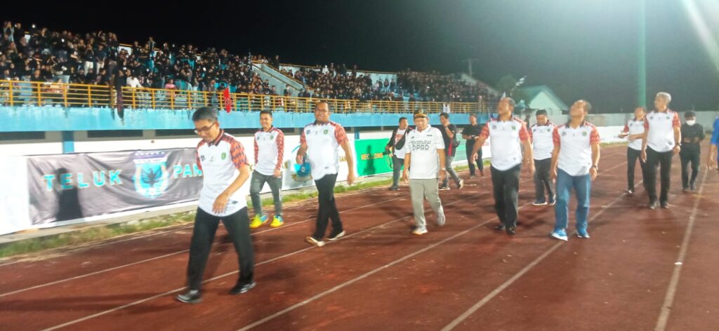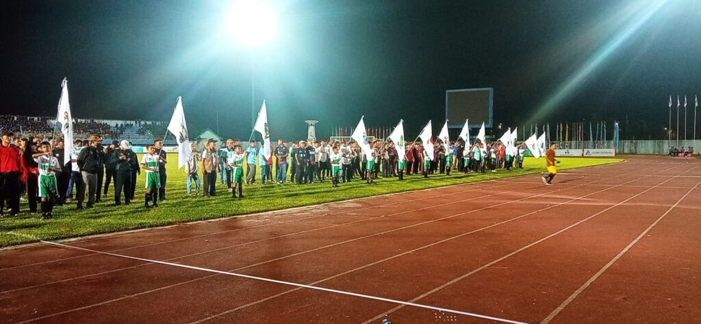 Suasana pembukaan Turnamen sepak bola Bupati Cup 2022 di Stadion Utama Kudungga, Sangatta Kutai Timur. Foto: Wahyu Yuli Artanto Pro Kutim