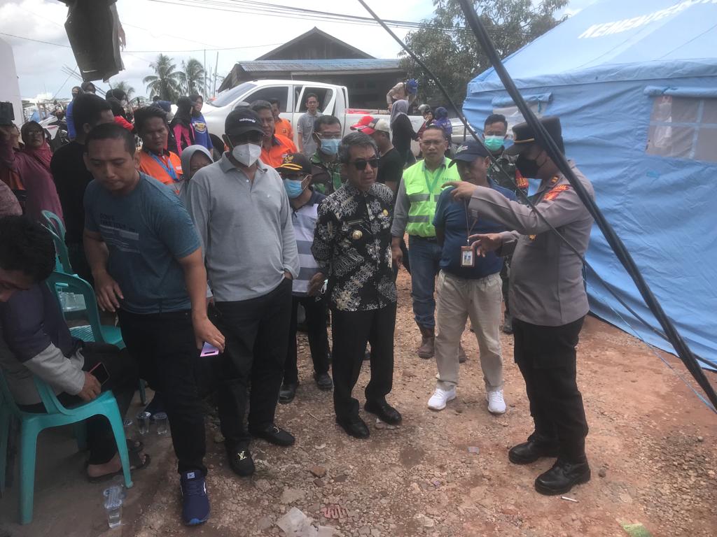 Bupati Kutim H Ardiansyah Sulaiman didampingi Kapolsek Bengalon, Wakil Ketua DPRD Kutim H Arfan saat meninjau dan menyerahkan bantuan kepada korban kebakaran yang terjadi di Jalan Mulawarman RT 14, Desa Sepaso Barat, Kecamatan Bengalon pada Jumat (30/9/2022), jam 3 dini hari tadi. (foto ist)