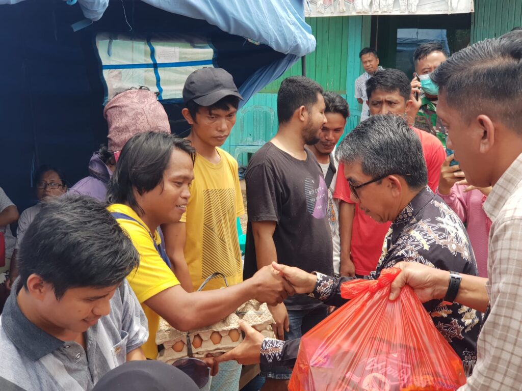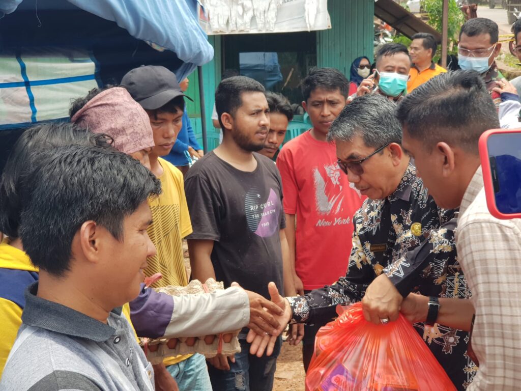 BENGALON- Penyerahan bantuan sembako menjadi refleksi empati dari Bupati Kutai Timur (Kutim) untuk musibah kebakaran di Jalan Mulawarman RT 14, Desa Sepaso Barat, Kecamatan Bengalon pada Jumat (30/9/2022). Rencana pendistribusian paket sembako sengaja dipercepat karena Bupati khawatir para korban yang mencapai 107 jiwa dari 42 kepala keluarga (KK) kekurangan bahan makanan pasca-kebakaran.