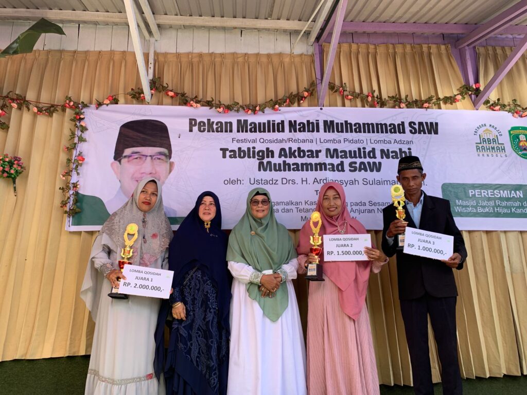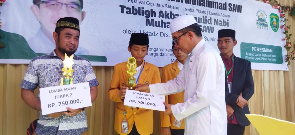 Sekadar diketahui, kegiatan itu dirangkai penyerahan hadiah festival qasidah/rebana, lomba pidato dan lomba adzan. Juga peresmian Masjid Rahmah dan Wisata Bukit Hijau Kandolo dengan penandatanganan prasasti. Hadir pula Wakil Ketua DPRD Arfan, Ketua TP PKK Siti Robiah, Kadispar Nurullah, Plt Camat Teluk Pandan Anwar, tokoh masyarakat, tokoh agama, masyarakat sekitar, perwakilan stakeholder dan undangan lainnya.
