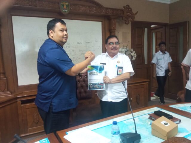 Asisten Administrasi Umum dan Keuangan, Jamiatulkhair menyerahkan Laporan Kerja Bencana Banjir kepada Kepala Keasistenan pemeriksaan Ombudsman RI perwakilan Kaltim Dwi Farisa Putra Wibowo