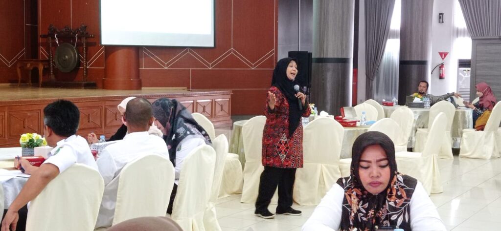 Asisten Administrasi Umum Jamiatulkhair Daik saat membuka kegiatan pengelolaan arsip terjaga gelaran Dispusip Kutim dan narasumber Sri Wulandari memberikan pemaparan. Foto: Irfan/Pro Kutim