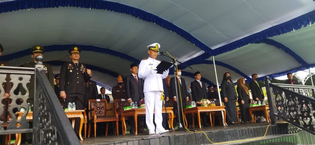 Danlanal Sangatta Letkol Laut (P) Shodikin memimpin jalannya upacara Hari Pahlawan. Foto: Wahyu/Pro Kutim