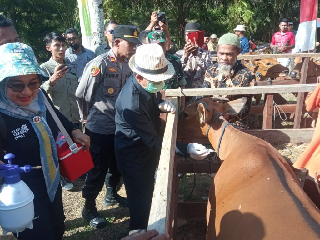 Sebelumnya, Kepala Unit Pelaksana Teknis (UPT) Penyuluhan Pertanian Peternakan dan Perkebunan (UPT P4) Yuliandi menyampaikan pelaksanaan vaksin PMK pertama telah dilakukan sekitar satu bulan lalu. Bersama tim dokter hewan dari Distanak. Kemudian kali ini penyuntikan vaksin PMK tahap kedua yang diawali oleh Bapak Bupati. Ditargetkan 160 sapi disuntik vaksin PMK tahap dua.