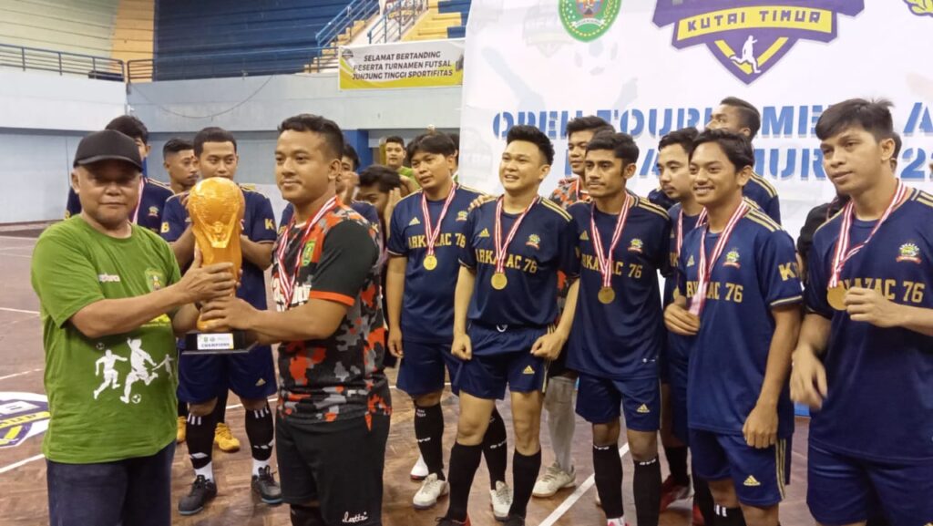 SANGATTA – Kejuaraan Futsal bertajuk Open Turnamen AFKAB Kutai Timur Tahun 2022 yang diselenggarakan Dinas Pemuda dan Olahraga (Dispora) Kutai Timur (Kutim) bekerja sama dengan Asosiasi Futsal Kabupaten (AFKAB) Kutai Timur (Kutim) resmi ditutup Wakil Bupati Kutim Kasmidi Bulang di GOR Kudungga Sangatta, Sabtu (10/12/2022) malam.