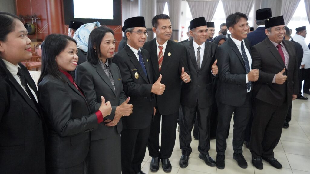 Momen saat Bupati Kutim H Ardiansyah Sulaiman melantik dan mengukuhkan 372 pejabat Pimpinan Tinggi Pratama setingkat eselon II, Pejabat Administrator dan Pengawas. Pelantikan berlangsung di Ruang Akasia, Gedung Serba Guna, Komplek Pusat Perkantoran Pemkab Kutim di Bukit Pelangi, Sangatta. Foto: Fuji Pro Kutim