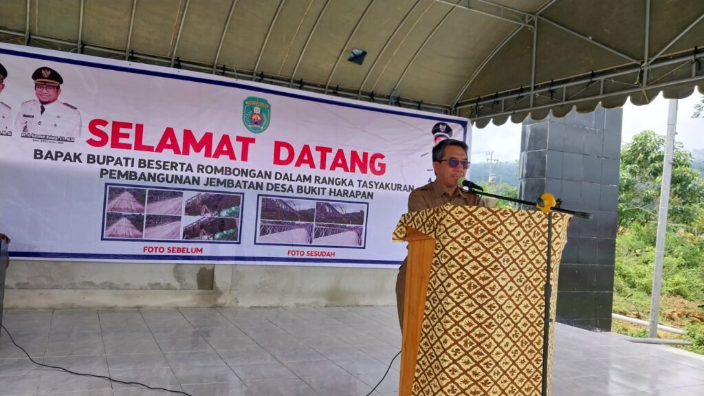“Mari kita rawat sehingga betul-betul bermanfaat. Kami mohon bersabar juga masyarakat Desa Bukit Harapan, karena jembatan itu belum bisa digunakan secara maksimal. Sebab masih ada pembuatan pondasi untuk landasan jembatan tersebut,” tambahnya