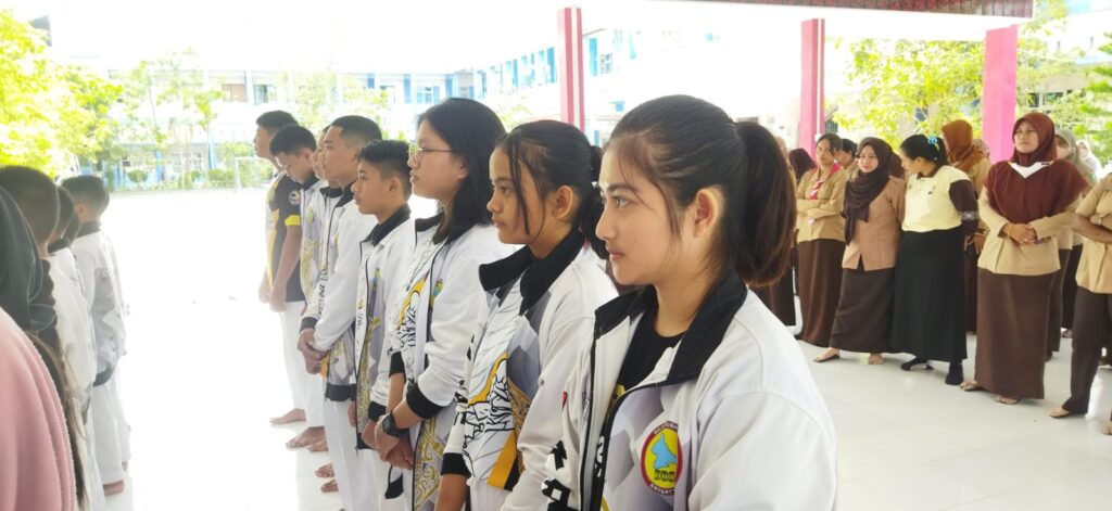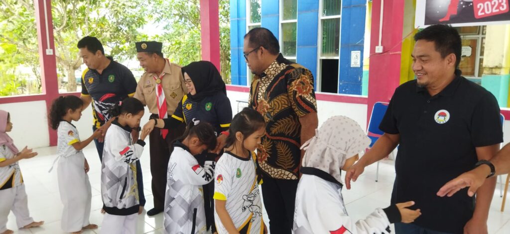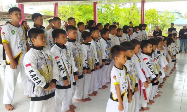 Suasana pelepasan kontingen Institut Karate Do Indonesia Kutai Timur yang digelar di dojo SDN 011 Sangatta Utara, Sabtu (4/2/2023).