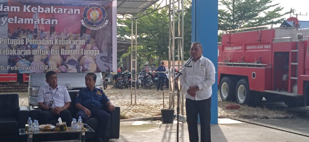 SANGATTA – Bupati Kutim Ardiansyah Sulaiman membuka kegiatan edukasi dini pengenalan profesi petugas pemadam kebakaran dan sosialisasi penanggulangan dini kebakaran gelaran Dinas Pemadam Kebakaran dan Penyelamatan (DPKP) Kutim yang diikuti wali murid, anak-anak TK Aisyiyah Bustanul Athfal (ABA) dan ibu rumah tangga. Kegiatan digelar di halaman DPKP Kutim, Rabu (15/2/2023).