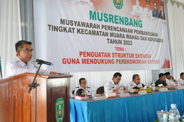 KONGBENG – Musrenbangcam Kongbeng dan Muara Wahau untuk Rencana Kerja Pembangunan Daerah (RKPD) 2024 dipusatkan di area BPU Desa Makmur Jaya, Rabu (1/3/2023). Kegiatan langsung dibuka oleh Bupati Kutim Ardiansyah Sulaiman. Fokus dalam Musrenbangcam masih dalam penguatan struktur ekonomi guna mendukung pembangunan daerah.