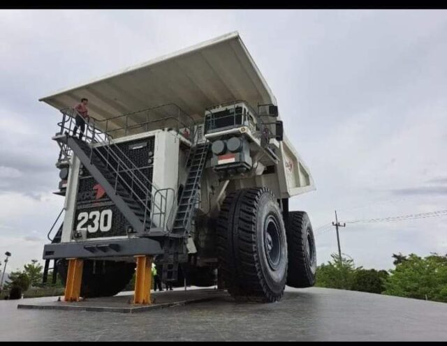 Ikon tambang satu unit “Hauling Truck” raksasa Liebher T 282B seberat 237 ton yang mampu mengangkut beban 360 ton. Lokasi Ikon tambang ini berada di kawasan Bukit Pelangi. Foto: Vian Pro Kutim