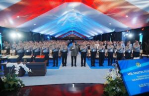 SANGATTA – Apel gabungan pengamanan malam takbiran yang dipimpin Kapolres Kutim AKBP Ronny Bonnic di halaman Mako Polres Kurim turut dihadiri Bupati Ardiansyah Sulaiman. Tampak pula mendampingi Dandim 0909/KTM Letkol Inf Adi Swastika, Danlanal Sangatta Letkol Laut (P) Shodikin dan para peserta apel meliputi pasukan Dishub, Satpol PP, LSM, Basarnas, Senkom, Lanal, Kodim dan instansi-instansi terkait.