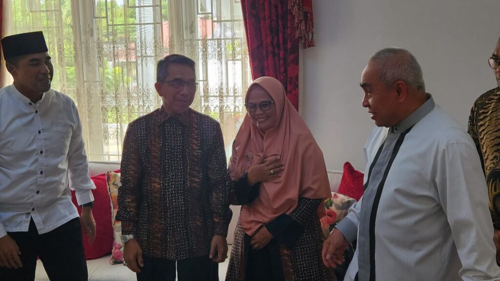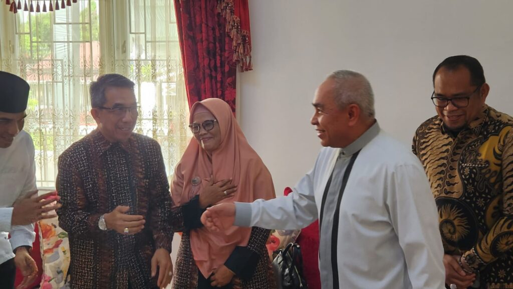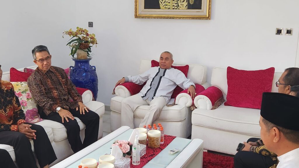 Bupati Kutim Ardiansyah Sulaiman dan Wabup Kasmidi Bulang didampingi beberapa pejabat teras Pemkab Kutim mengunjungi kediaman rumah pribadi Gubernur Isran Noor dalam agenda Safari Syawal. Foto: Basuki Isnawan/Pro Kutim