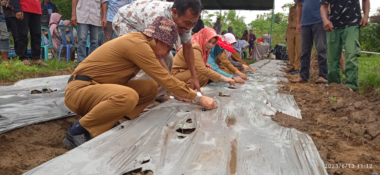 SANGATTA – Kegiatan Tanam Raya Kelompok Tani (Poktan) Pelangi Kutim Sejahtera (PKS) di area lahan berdekatan dengan Gedung Graha Expo Sangatta, Selasa (13/6/2023), turut dihadiri Bupati Kutim Ardiansyah Sulaiman bersama Camat Sangatta Utara Hasdiah, Kepala Dinas Tanaman Pangan, Hortikultura dan Peternakan (DTPHP) Dyah Ratnanigrum dan Ketua Dekranasda Kutim Siti Robiah Ardiansyah.