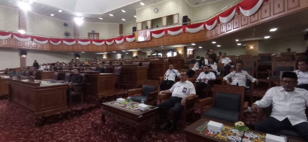 Asisten II Bidang Perekonomian dan Pembangunan Zubair yang mewakili Pemkab Kutim dalam menyampaikan Nota Pengantar Pertanggungjawaban APBD 2022. Foto: Vian Pro Kutim.