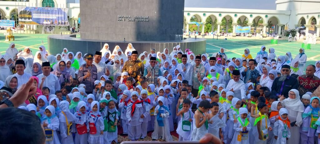 SANGATTA – Pasca pandemi COVID-19 selama tiga tahun, kegiatan manasik haji kembali digelar oleh sejumlah panitia di Kutim. Ribuan murid Taman Kanak-Kanak (TK) dari Kecamatan Sangatta Utara dan Sangatta Selatan mengikuti kegiatan pengenalan manasik haji yang dilaksanakan oleh Ikatan Guru Taman Kanak-kanak Indonesia (IGTKI) Kabupaten Kutai Timur (Kutim). Kegiatan tersebut dibuka langsung oleh Bupati Kutim Ardiansyah Sulaiman di Sarana Pengenalan Haji (SPH) Masjid Agung Al Faruq, Bukit Pelangi, Kamis (27/7/2023) pagi.