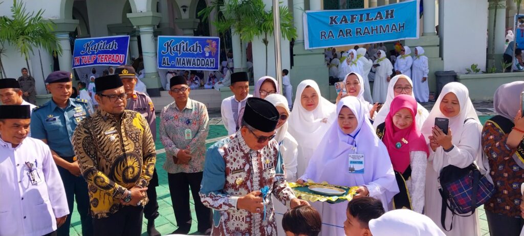 Bupati Ardiansyah Sulaiman dan Wabup Kasmidi Bulang saat menghadiri kegiatan pengenalan manasik haji bagi TK se-Kecamatan Sangatta Utara dan Sangatta Selatan. Foto : Nasruddin/Pro Kutim