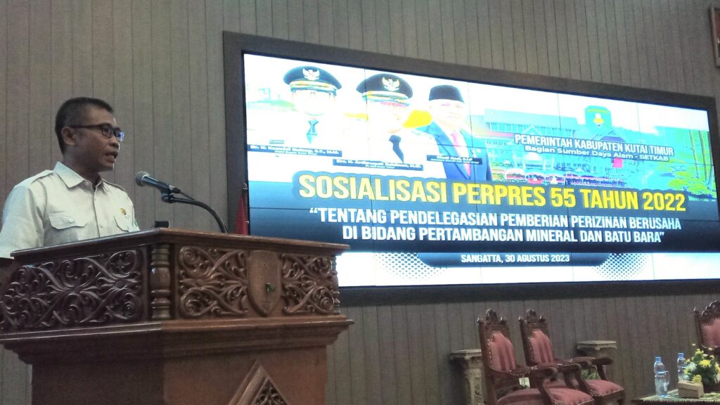 SANGATTA – Pemerintah Kabupaten Kutai Timur melalui Bagian Sumber Daya Alam (SDA) Sekretariat Kabupaten mensosialisasikan Peraturan Presiden (Perpres) Nomor 55 Tahun 2022 Tentang Pendelegasian Pemberian Perizinan Berusaha Dibidang Pertambangan Mineral dan Batu Bara.
