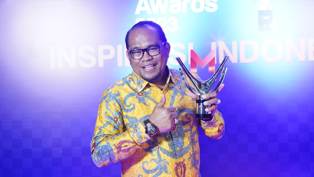 Momen Wabup Kasmidi Bulang saat menerima penghargaan Merdeka Award 2023. Foto: istimewa