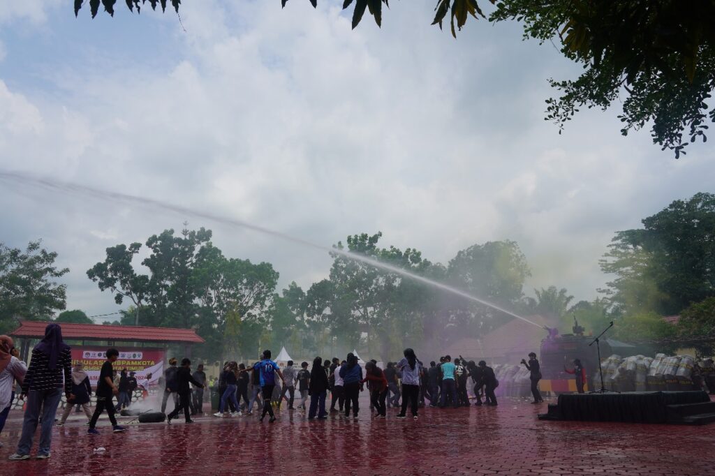 Selain simulasi pengamanan saat terjadi kericuhan, juga dilakukan Deklarasi Pemilu Damai yang ditandatangani seluruh Forkopimda dan partai politik,” tegasnya.