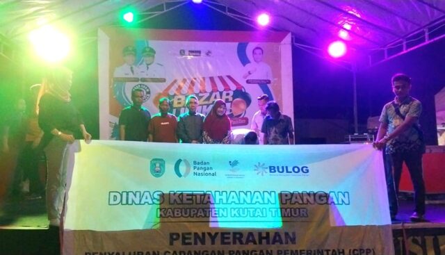 TELUK PANDAN – Pemerintah Kabupaten Kutai Timur (Kutim) melalui Dinas Ketahanan Pangan (DKP) dan Perusahaan Umum (Perum) Bulog Cabang Samarinda menyalurkan cadangan pangan pemerintah (CPP) tahap kedua tahun 2023. Total beras yang disalurkan sebanyak 1.337, 8 ton untuk 13.378 jiwa penerima manfaat dari 18 kecamatan dan 141 desa. Penyerahan secara simbolis dilakukan oleh Bupati Kutim Ardiansyah Sulaiman di area Road Show Promosi Bazar UMKM Desa Teluk Pandan, Jum’at (29/9/2023) malam.