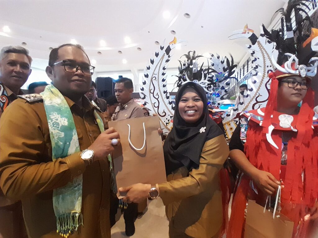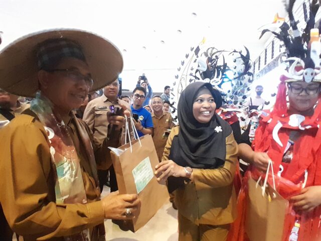 “Jadi sebelum memasuki stand Kecamatan Sangatta Utara, pengunjung disambut oleh 2 orang maskot, laki-laki dan perempuan dengan memakai gaun berbahan dasar plastik bekas bungkus sabun cuci dan lainnya,” kata Hasdiah.