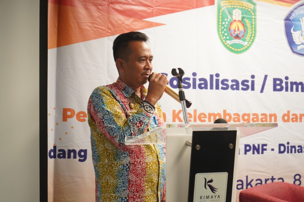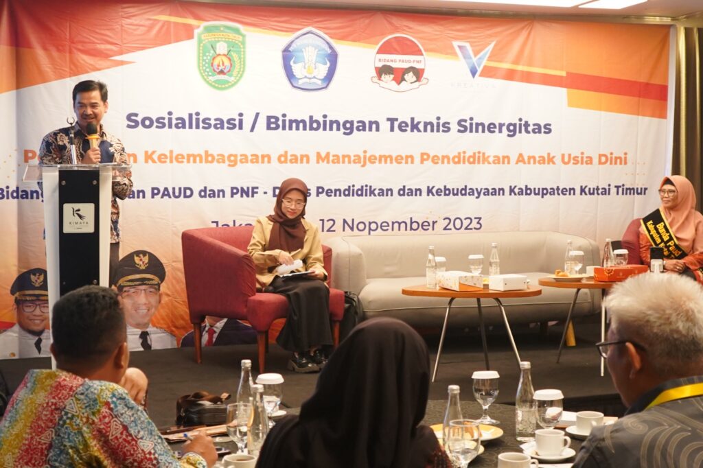 JAKARTA – Saat membuka sosialisasi dan bimbingan teknis (Bimtek) Penguatan Kelembagaan dan Manajemen PAUD yang diinisiasi oleh Bidang Pembinaan PAUD dan Pendidikan Non Formal (PNF) Dinas Pendidikan dan Kebudayaan (Disdikbud) Kabupaten Kutai Timur (Kutim), Kamis (9/11/2023), Kepala Disdikbud Kutim Mulyono memberikan perspektif arahan.