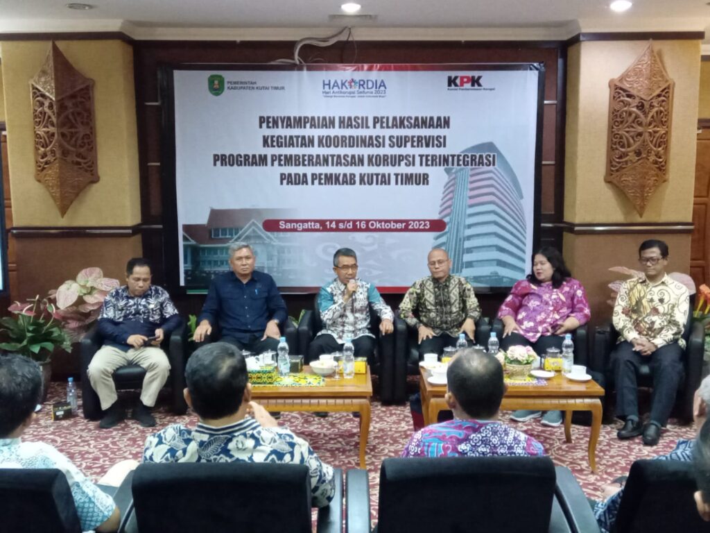SANGATTA – Komisi Pemberantasan Korupsi (KPK) Republik Indonesia bekerja sama dengan Inspektorat Wilayah (Itwil) Kabupaten Kutai Timur (Kutim), menggelar Penyampaian Hasil Pelaksanaan Kegiatan Koordinasi Supervisi Program Pemberantasan Korupsi.
