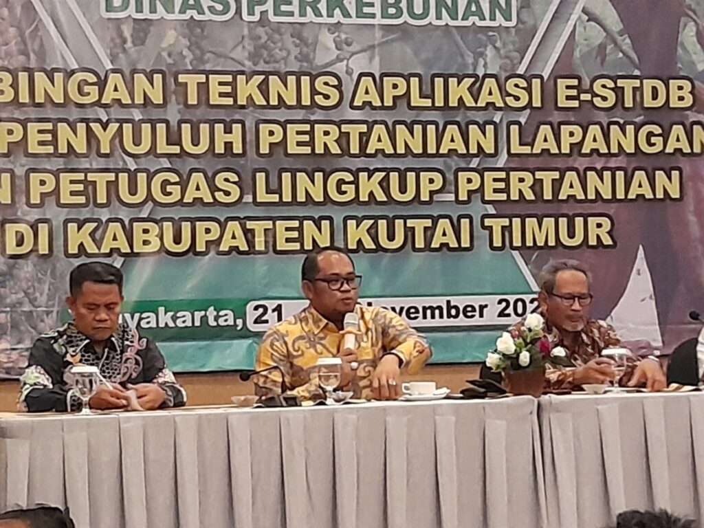 YOGYAKARTA- Status dan jaminan kepastian lahan perkebunan yang dimiliki pekebun di Kabupaten Kutai Timur (Kutim) belum teridentifikasi secara komprehensif sesuai data faktual di lapangan. Untuk itu diperlukan terobosan atau lompatan kebijakan melalui konsolidasi data dan registrasi melalui program Surat Tanda Daftar Budidaya Elektronik (E-STDB). Untuk itu agar kendala dimaksud teratasi, maka Dinas Perkebunan (Disbun) Kutim berinisiatif menggelar kegiatan Bimbingan Teknis Aplikasi Surat Tanda Daftar Budidaya Elektronik (E-STDB) bagi Penyuluh Pertanian Lapangan (PPL) dan Petugas Lingkup Pertanian Kutim. Bimtek ini digelar di Yogyakarta pada Selasa (21/11/2023).