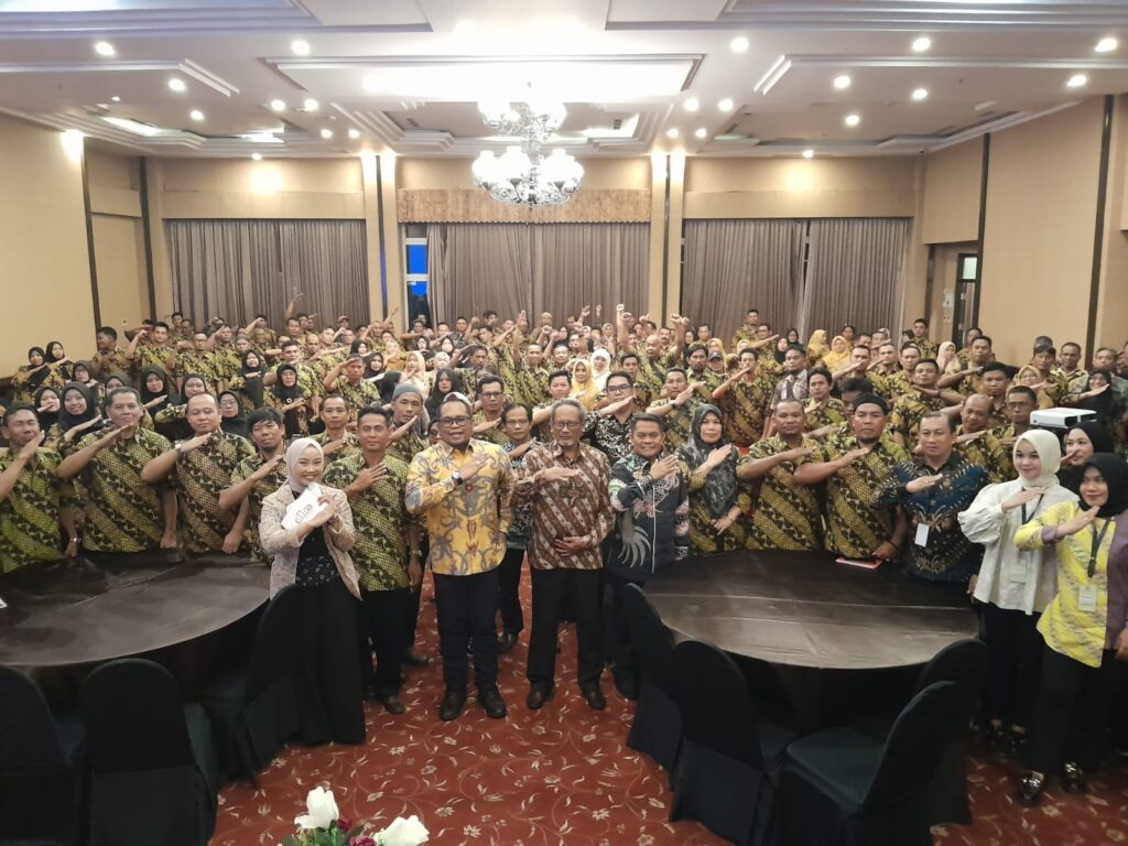 Wakil Bupati Kutim Kasmidi Bulang saat membuka kegiatan Bimbingan Teknis Aplikasi Surat Tanda Daftar Budidaya Elektronik (E-STDB) bagi Penyuluh Pertanian Lapangan (PPL) dan Petugas Lingkup Pertanian Kutim. Foto: Vian Pro Kutim