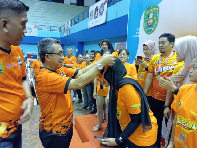Bupati Ardiansyah Sulaiman mengalungkan medali kepada atlet yang juara. Foto: Wahyu/Pro Kutim