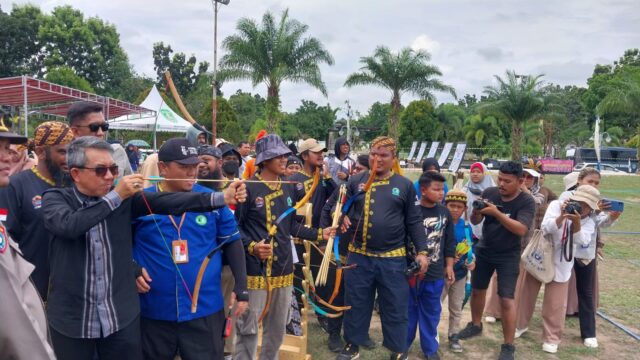 SANGATTA – Kompetisi olahraga panahan tradisional bertajuk Traditional Archery Tournament (TAT) Bupati Cup II Kutim tahun 2023 diikuti sebanyak 250 pemanah tradisional dari berbagai daerah. Kegiatan yang digagas Federasi Seni Panahan Tradisional Indonesia (Fespati) Kutim ini dibuka Bupati Kutim Ardiansyah Sulaiman di Lapangan Helipad, Pusat Perkantoran Bukit Pelangi, Sabtu (2/12/2023) pagi.