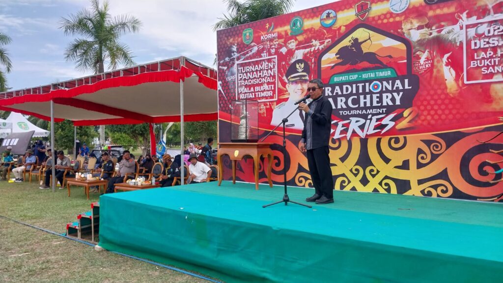 Momen Bupati Kutim Ardiansyah Sulaiman saat membuka Kejuaraan Traditional Archery Tournament (TAT) Bupati Cup II Kutim tahun 2023. Foto: Nasruddin Pro Kutim