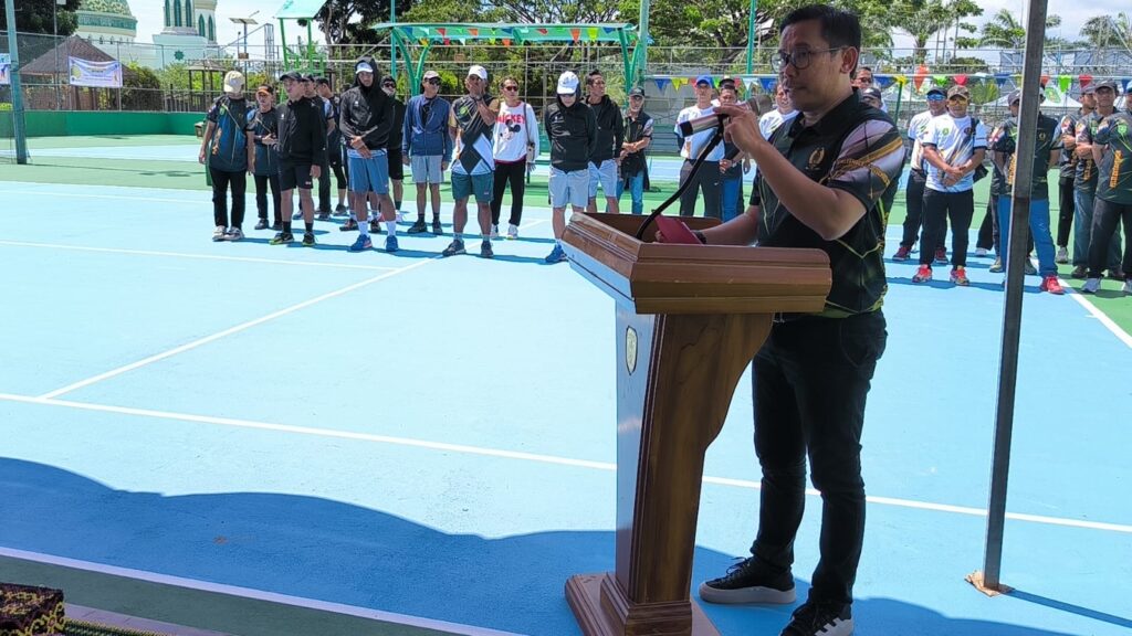 “Atas nama pemerintah daerah menyampaikan selamat datang kepada seluruh atlet tenis lapangan yang datang dari berbagai wilayah yang ada di Kaltim dan Kaltara,” ucapnya di hadapan Wabup Kasmidi Bulang, Ketua Pelti Kutim Syahfur, perwakilan KONI Kutim, unsur Forkofimda dan peserta turnamen.