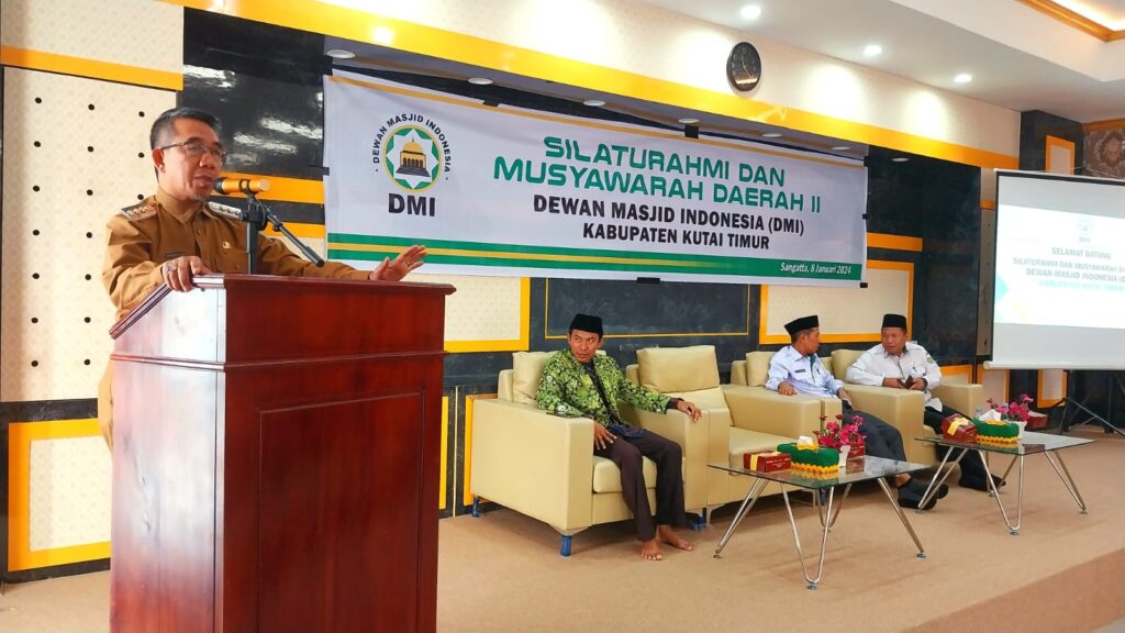 SANGATTA – Bupati Kutai Timur (Kutim) Ardiansyah Sulaiman menghadiri silaturahmi dan membuka secara resmi Musyawarah Daerah (Musda) II Dewan Masjid Indonesia (DMI) Kabupaten Kutim. Kegiatan berlangsung di Aula Gedung PLHUT Kemenag Kutim, Senin (8/1/2024). Turut hadir dalam acara yakni Sekretaris DMI Provinsi Kaltim Muhammad Idris, Kepala Kemenag Kutim Ahmad Barkati, Ketua MUI Kutim H M Adam, Ketua Muhammadiyah Kutim H Suyuti, Pengurus NU Kutim, Ketua Baznas Kutim Masnif Sofwan, Sekretaris Masjid Agung Al Faroeq Yakub Fadillah, Ketua DMI Kutim H Abdurrahim Yunus, Bagian Kesra Setkab Kutim dan tamu undangan lainnya.