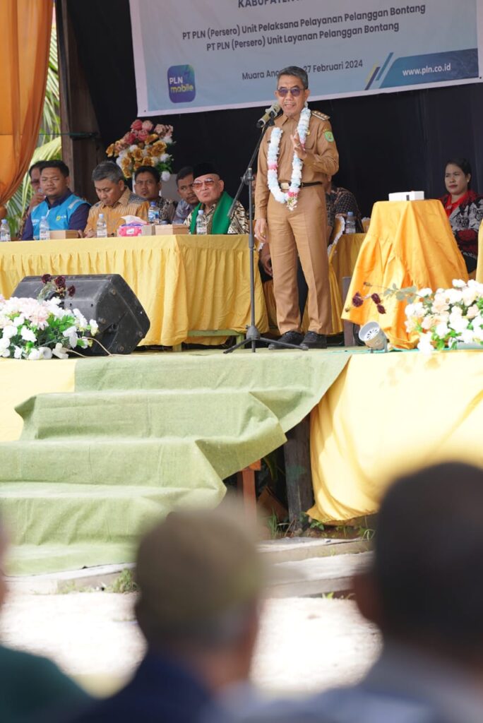 MUARA ANCALONG – Berkat sinergi antara Pemerintah Kabupaten Kutai Timur (Pemkab Kutim) bersama PT PLN, akhirnya sekarang ratusan rumah warga di Desa Senyiur, Kecamatan Muara Ancalong bisa ikut menikmati listrik normal sehari semalam tanpa henti. Sama seperti masyarakat di perkotaan. Peresmian jam nyala listrik PLN 24 jam di Desa Senyiur ini dilakukan Bupati Kutim H Ardiansyah Sulaiman didampingi jajaran PT PLN Unit Pelaksana Layanan Pelanggan Bontang, Kadiskop UKM Teguh Budi Santoso, Camat Muara Ancalong Muhammad Harun Al Rasyid, Kades setempat serta ribuan warga sekitar. Peresmian dilakukan disela-sela kegiatan pembukaan Rapat Anggota Tahunan (RAT) Tutup Buku Tahun 2023 Koperasi Perkebunan Rukmana Sari.