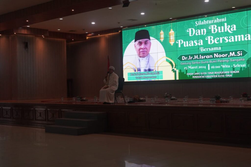 SANGATTA – Forum Camat se-Kutai Timur (Kutim) bersama Pemerintah Kabupaten (Pemkab) Kutim menggelar ajang silaturahmi dan buka puasa bersama (bukber), Senin (25/3/2024). Acara yang dimulai bakda Ashar itu turut dihadiri Bupati Kutim Ardiansyah Sulaiman, Wabup Kasmidi Bulang, tamu istimewa mantan Gubernur Kaltim Isran Noor, para Camat, Kepala Desa dan BP se-Kutim di Ruang Akasia, Gedung Serba Guna (GSG), Komplek Pusat Perkantoran Pemkab Kutim di Bukit Pelangi, Sangatta.