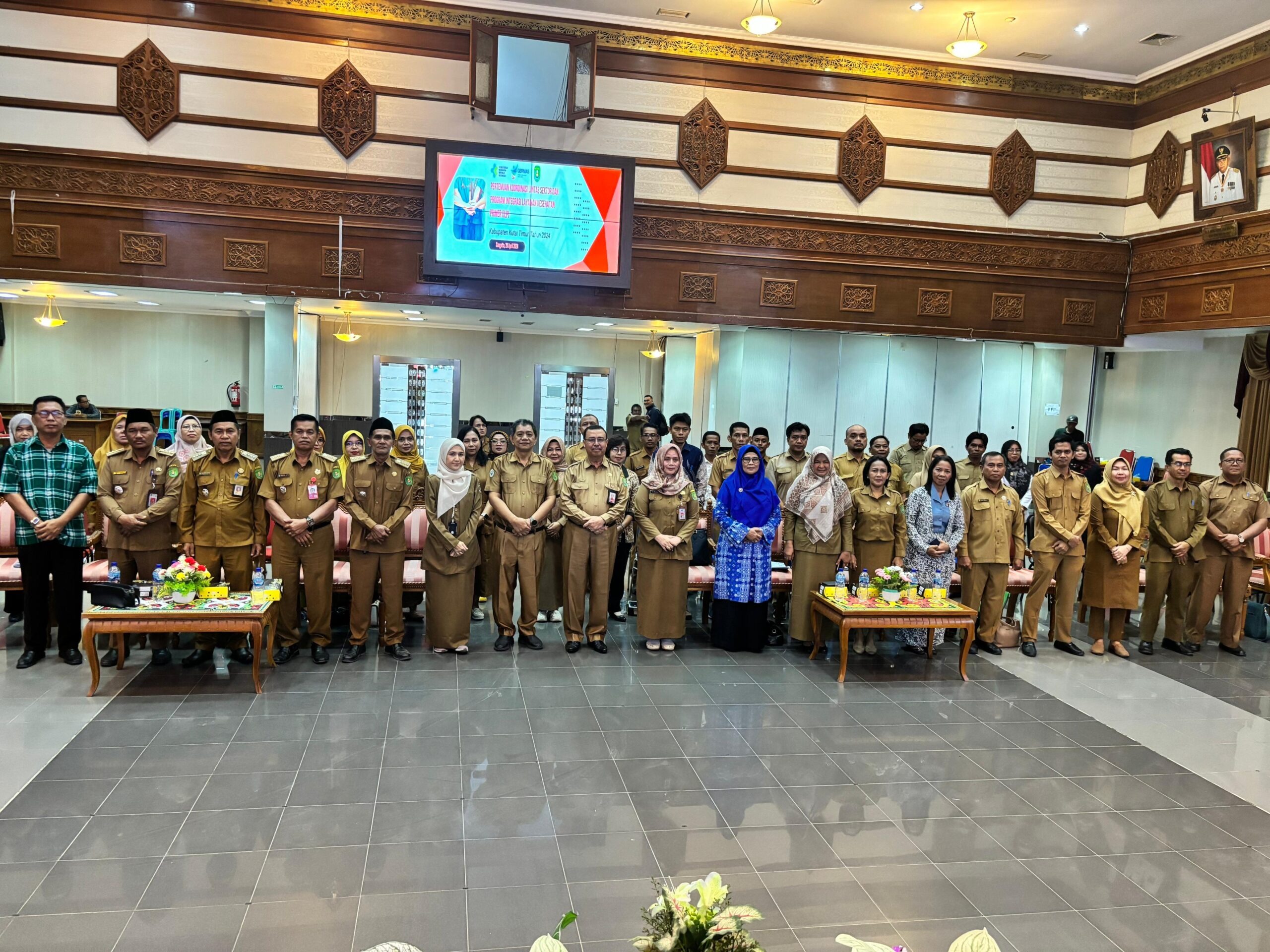 SANGATTA – Pemerintah Kabupaten Kutai Timur (Pemkab Kutim) melalui Dinas Kesehatan (Dinkes) menggelar Rapat Koordinasi Lintas Sektor dan Lintas Program Integrasi Layanan Kesehatan Primer (ILP) Tahun 2024 di Ruang Meranti Kantor Bupati Kutim, Senin (29/04/2024). Mengundang pembicara dari Dinkes Kaltim. Kegiatan ini turut dihadiri oleh Ketua TP PKK Kutim Siti Robiah, Staf Ahli Bupati Bidang Perekonomian, Pembangunan dan Keuangan Sulastin, serta perwakilan perangkat daerah (PD).