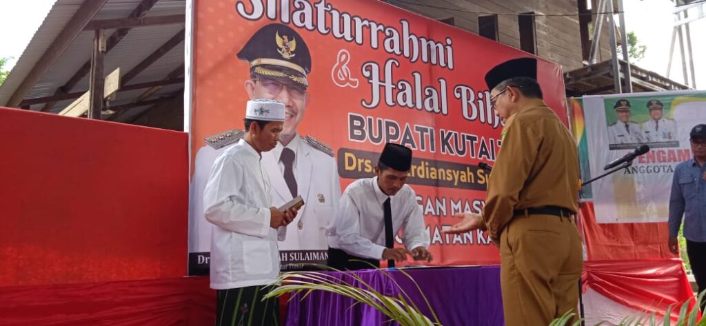 Momen pelantikan Anggota BPD Desa Mukti Lestari dirangkai dengan halal bihalal. Foto: Yuni/Pro Kutim