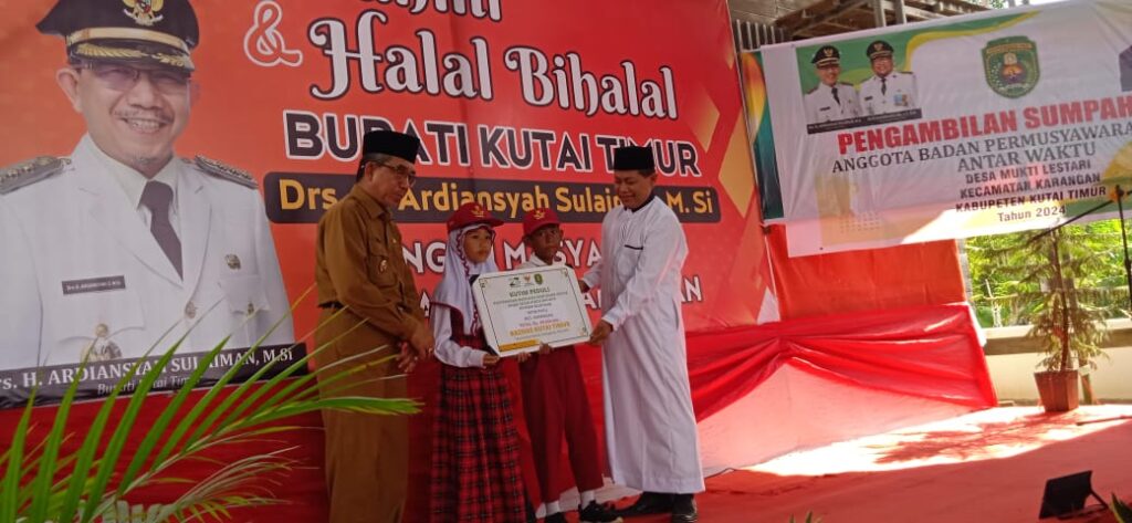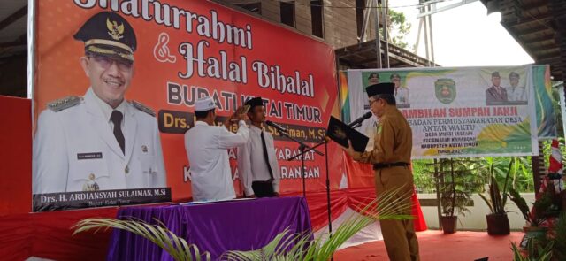 KARANGAN – Bupati Kutim Ardiansyah Sulaiman melantik dalam kegiatan pengambilan sumpah janji Anggota BPD Desa Mukti Lestari terpilih antar waktu, di Kafe Kanada Kecamatan Karangan Dalam, Senin (20/5/2024). Kegiatan ini turut dirangkai dengan silaturahmi dan halal bihalal Bupati Kutim Ardiansyah Sulaiman bersama masyarakat Karangan Dalam.