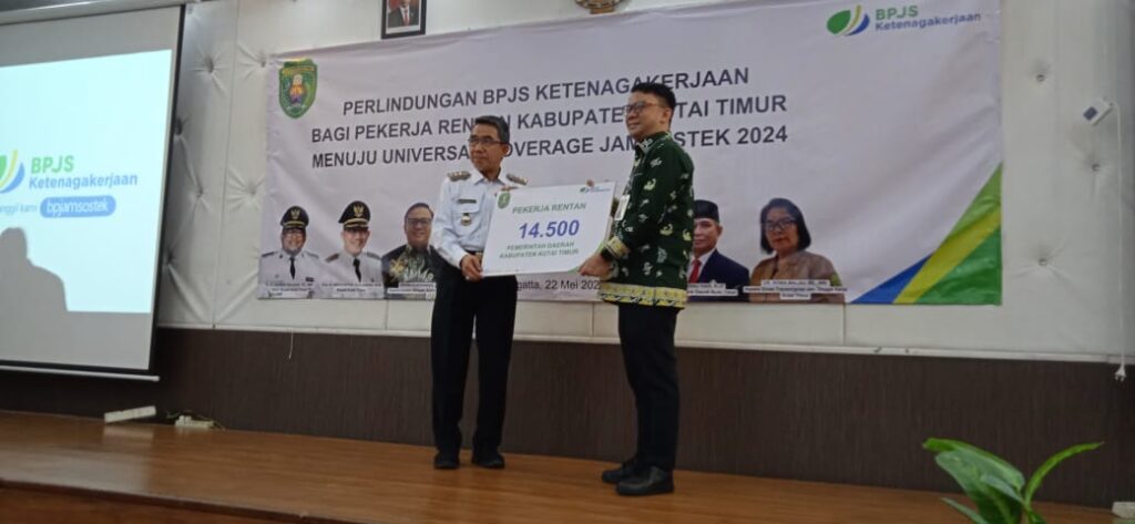 Dalam momen ini, sebanyak 14.500 pekerja rentan akan dilindungi BPJS Ketenagakerjaan. Penyerahan secara simbolis diserahkan Bupati Kutim Ardiansyah Sulaiman kepada Kepala Kantor Wilayah BPJS Ketenagakerjaan Kalimantan Erfan Kurniawan.