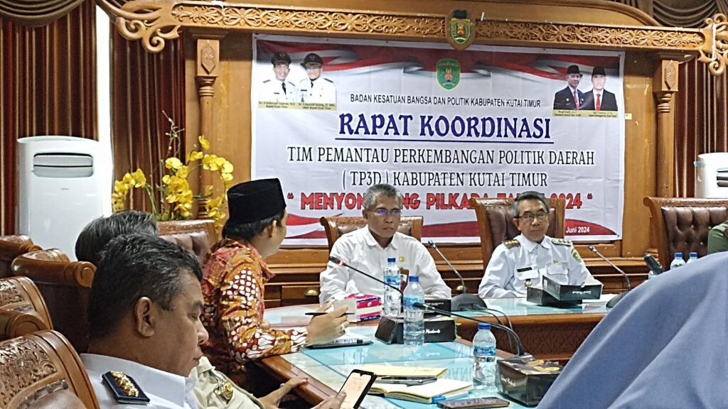SANGATTA – Badan Kesatuan Bangsa dan Politik (Kesbangpol) Kutim menggelar Rapat Koordinasi Tim Pemantau Perkembangan Politik Daerah (TP3D) di Ruang Arau Kantor Bupati Kutai Timur, Rabu (12/6/2024).