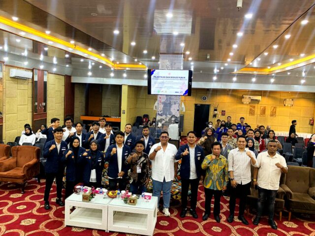 SANGATTA – Ketua Himpunan Pelajar dan Mahasiswa Kutim (HIPMA-KT) Pusat Theopilus Berada Be bersama anggota pengurus baru periode 2024-2026 baru saja dilantik di D’Lounge Hotel Royal Victoria, Sabtu (13/7/2024) kemarin. Kegiatan dimaksud mengangkat tema “Reaktualisasi Semangat Juang Kader Guna Menciptakan SDM yang Berintegritas serta Mampu Bersama Daerah.” Pelantikan dihadiri Asisten Administrasi Umum Seskab Kutim Sudirman Latief mewakili Bupati Kutim H Ardiansyah Sulaiman. Selain itu juga hadir pengurus senior dan wakil pembina HIPMA-KT, serta organisasi mahasiswa lainnya.