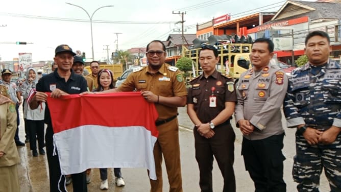 Wabup Kutim Kasmidi Bulang saat menghadiri kegiatan pembagian bendera merah putih. Foto: Irfan/Pro Kutim