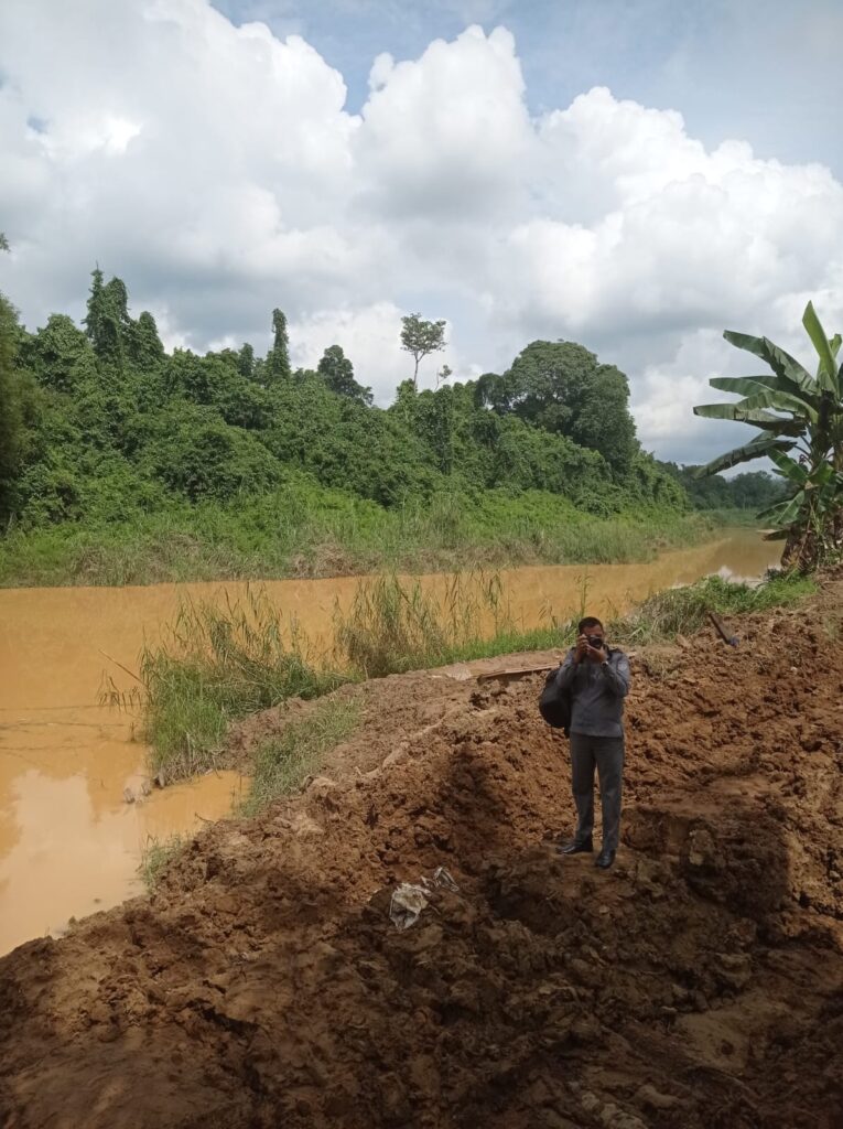 Direktur Utama Perumdam TTB Kutim Suparjan memimpin jalannya peninjauan pipa intake Kabo bersama rekan wartawan. Foto: Irfan/Pro Kutim